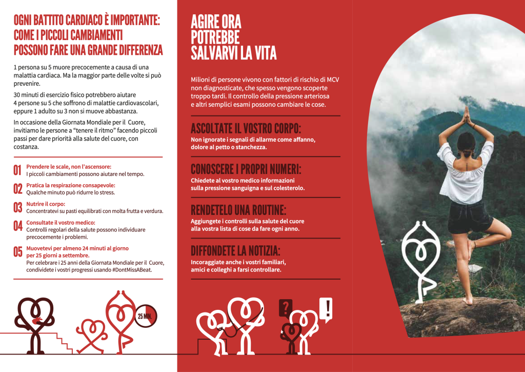 La Giornata Mondiale del Cuore è un’opportunità per tutti di fermarsi e considerare come usare al meglio il cuore per l’umanità, per la natura e per te. Battere le malattie cardiovascolari (CVD) è qualcosa che conta per ogni cuore che batte.